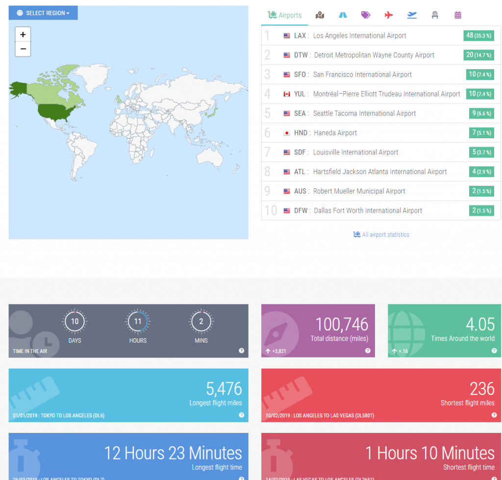 While 2018 was a busy one at nearly 60 flights covering 80,000 miles, and 3 trips to Japan… 2019 saw me top that all time record with close to 70 flights, and 97,000 actual-miles (though I earned a whopping 140k qualification miles with Delta towards my Medallion status, and even more than that in redeemable miles!)