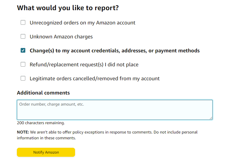 After reviewing your Amazon account, we did not find any unauthorized activity. As a result, we did not make any changes to your account.